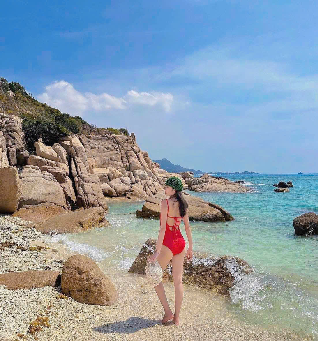 Quý khách tắm biển thư giãn ngắm biển tại Bãi Nồm hoặc bãi Nhà Cũ trên đảo Bình Ba.