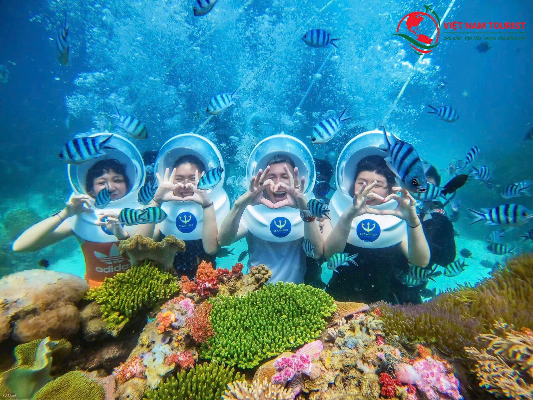 Du khách sẽ có khoảng 15 - 20 phút để dạo bước trong lòng đại dương, thảnh thơi chiêm ngưỡng thế giới san hô và nhiều loài sinh vật biển. Mỗi du khách sẽ có thợ lặn chuyên nghiệp đi bên cạnh để dẫn đường và chụp hình, quay phim để ghi lại những khoảnh khắc đáng nhớ.